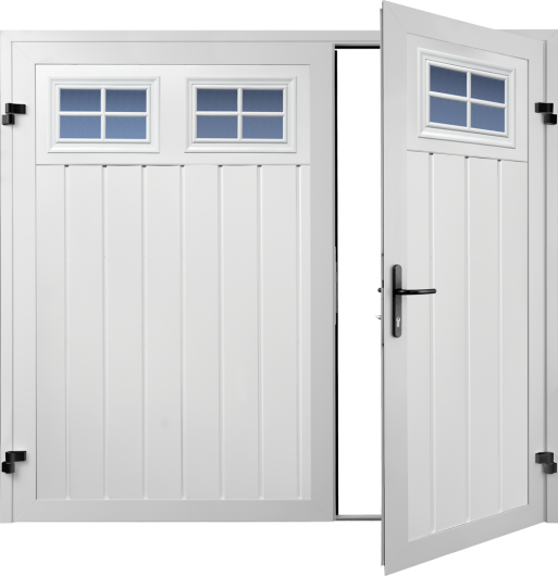 Steel bracing to the rear of the panels gives Pro side hinged garage doors good strength and. The black lever handle and thumb turn are neat and make opening and locking the door from inside simple. Matching side doors have the same construction. All doors also available 1/3:2/3 split, excluding doors with traditional windows, which are only available with a 50:50 split.