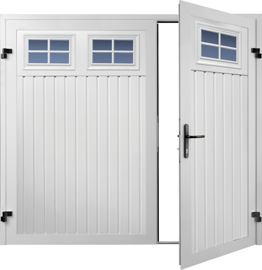 Steel bracing to the rear of the panels gives Pro side hinged garage doors good strength and. The black lever handle and thumb turn are neat and make opening and locking the door from inside simple. Matching side doors have the same construction. All doors also available 1/3:2/3 split, excluding doors with traditional windows, which are only available with a 50:50 split.