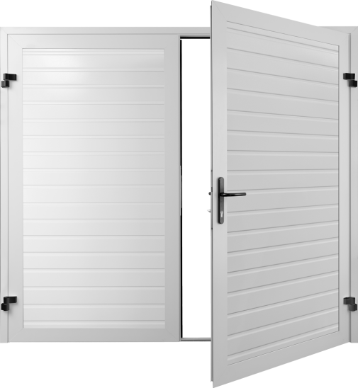 Pro side hinged doors combine a single skin steel door panel within an aluminium sub frame, all pre-hung in an aluminium frame. Doors are un-insulated and fitted with mortice locking.