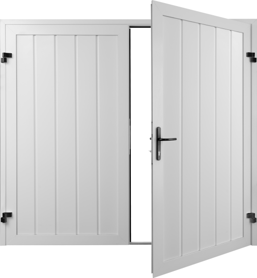 Steel bracing to the rear of the panels gives Pro side hinged garage doors good strength and. The black lever handle and thumb turn are neat and make opening and locking the door from inside simple. Matching side doors have the same construction. All doors also available 1/3:2/3 split, excluding doors with traditional windows, which are only available with a 50:50 split.