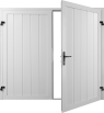 Pro side hinged doors combine a single skin steel door panel within an aluminium sub frame, all pre-hung in an aluminium frame. Doors are un-insulated and fitted with mortice locking.