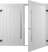 Pro side hinged doors combine a single skin steel door panel within an aluminium sub frame, all pre-hung in an aluminium frame. Doors are un-insulated and fitted with mortice locking.