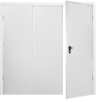 Steel bracing gives side hinged doors a robust feel in everyday use. The standard configuration shown above uses twin latches on the active leaf and shoot bolts on the inactive leaf. Hold-open stays are available as an option.
